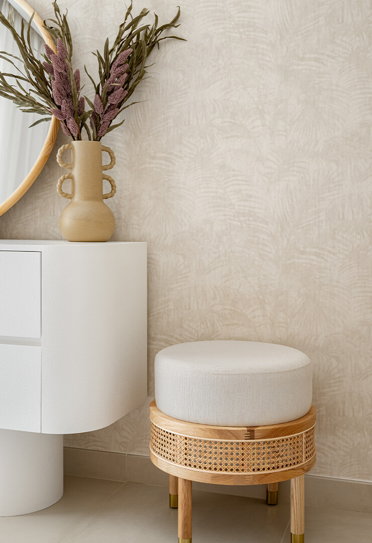 Dbamy o każdy detal – korzystamy ze sprawdzonych materiałów, takich jak kamień naturalny, drewno, porcelana czy rattan, a także ze szlachetnych tkanin: len, wełna, jedwab. Dzięki temu tworzymy wnętrza pełne różnorodnych faktur, kształtów i doznań, które działają na wszystkie zmysły.